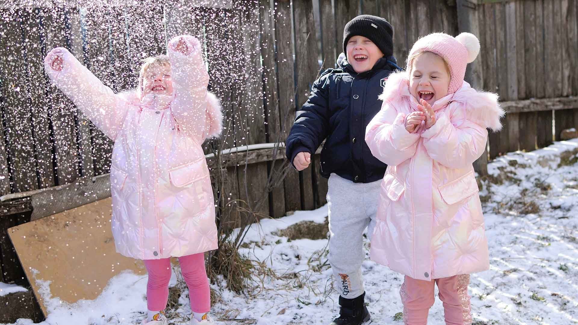 Laura, Taisia, and David, Larisa’s three youngest children, are bright, energetic, and love going to kindergarten. But despite the freezing winter, they often had little more than thin jackets and worn sports shoes, better suited to spring than snow.